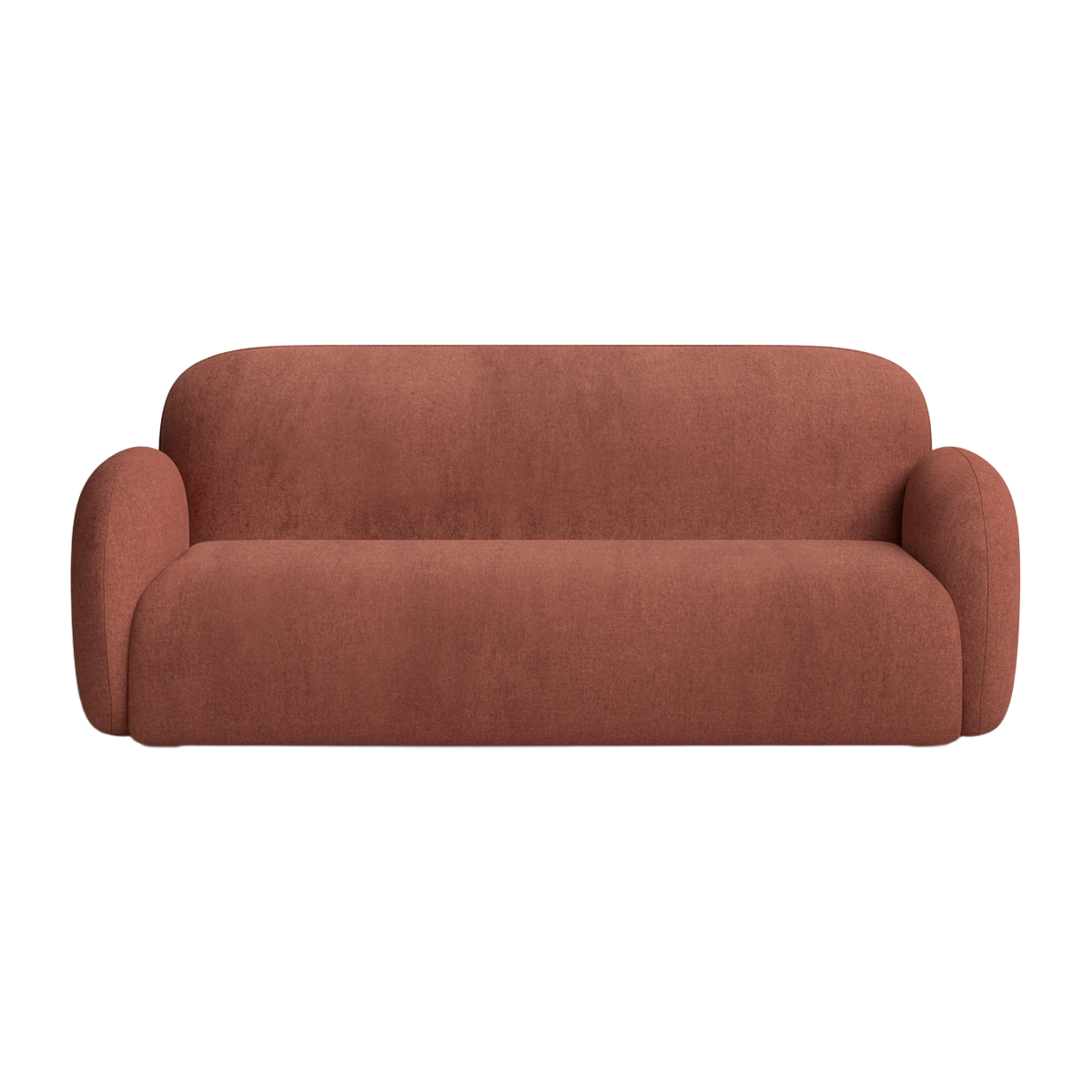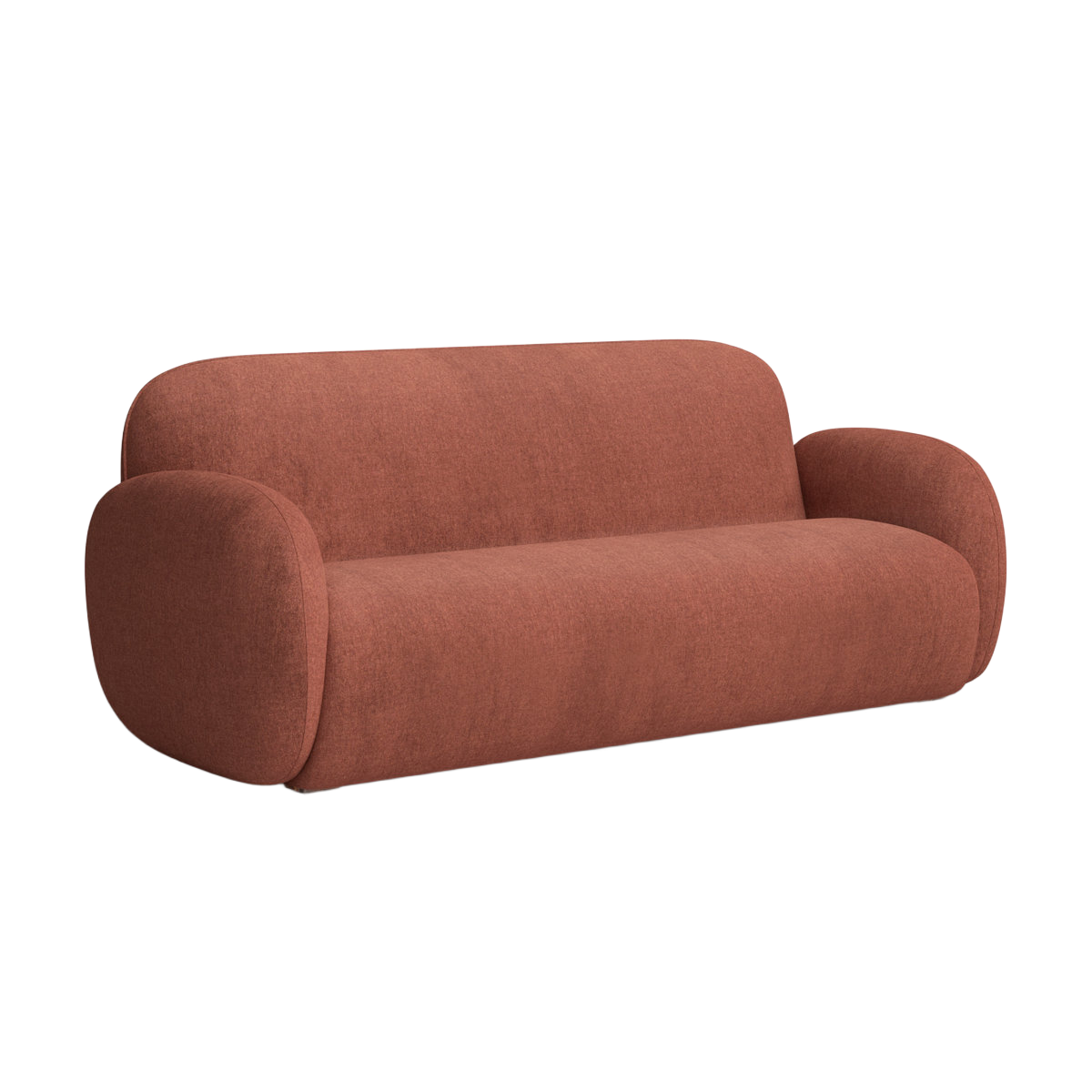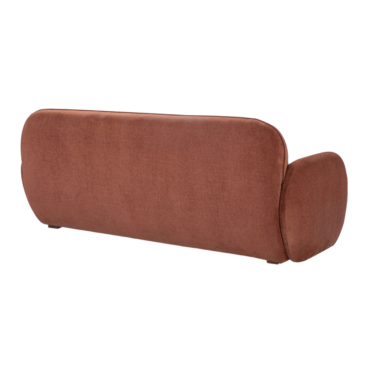 The Moab Sofa makes a confident statement with its low, sculptural profile and softly rounded silhouette. Upholstered in a warm, caramel-toned fabric, this piece features generous curves, oversized arms, and a smooth, continuous form that feels both modern and inviting. The tailored upholstery enhances its clean lines while adding depth and richness to the overall look.