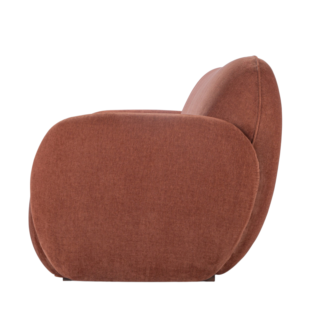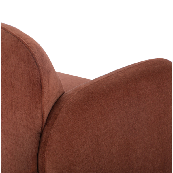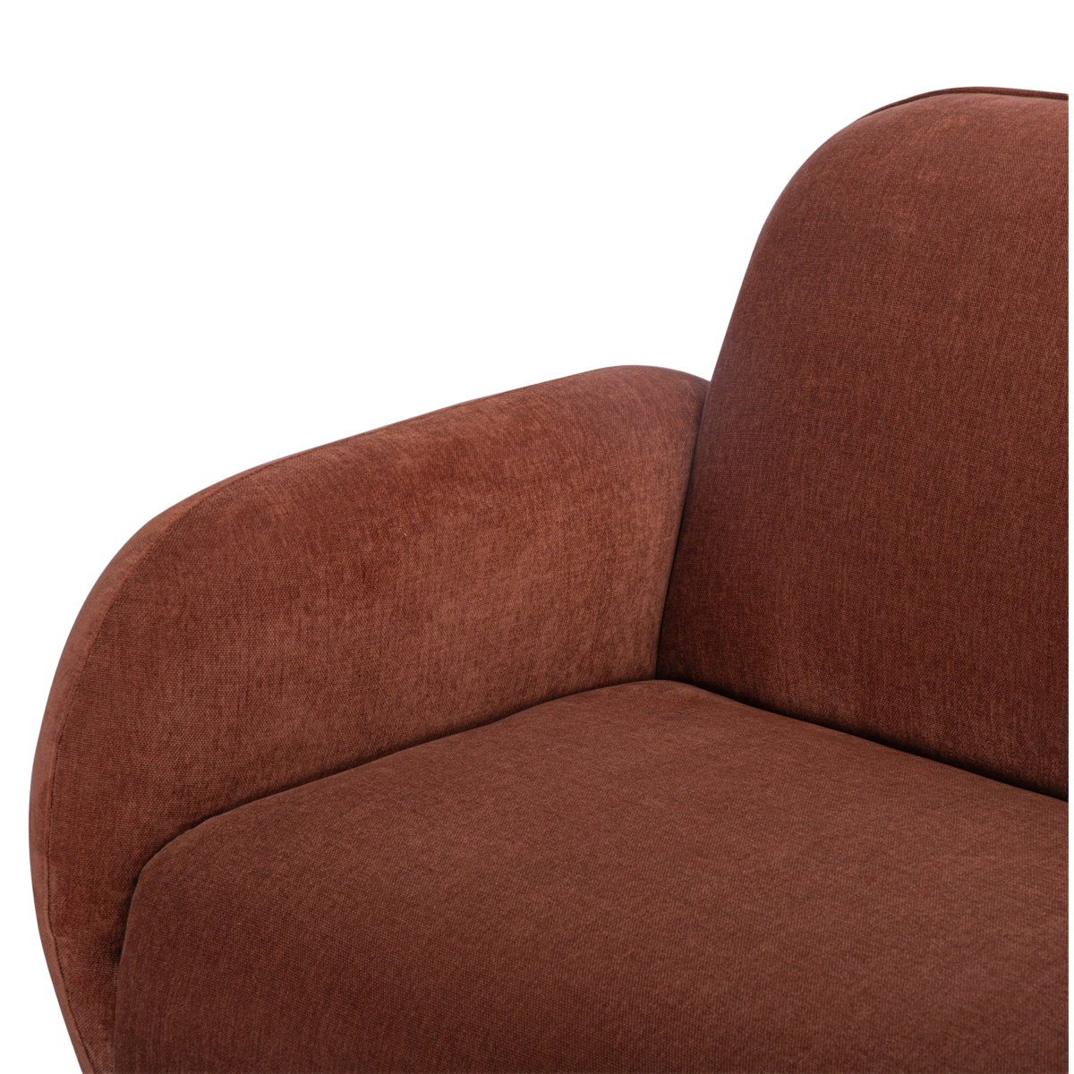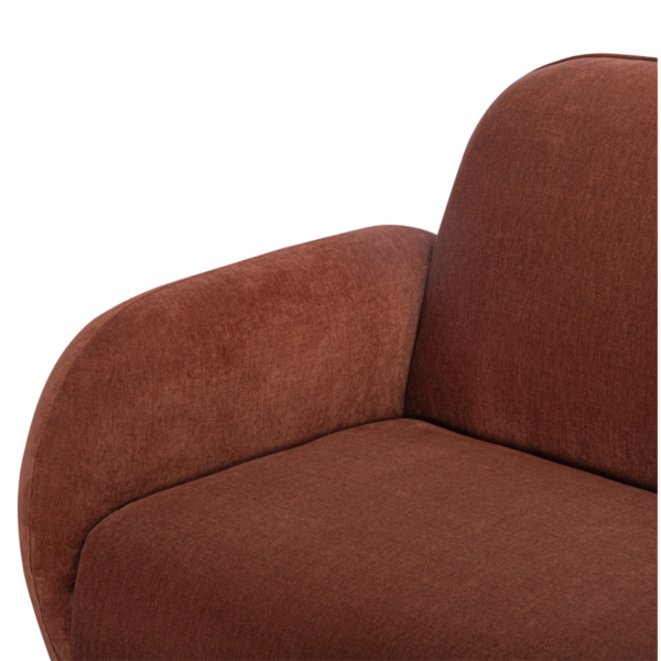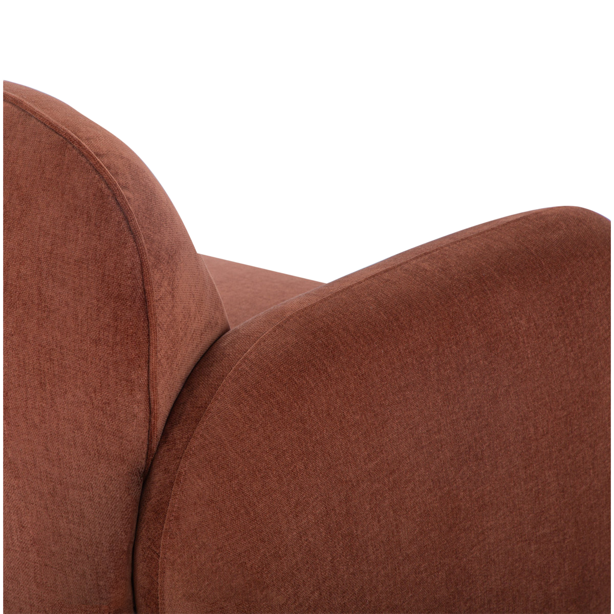 The Moab Sofa makes a confident statement with its low, sculptural profile and softly rounded silhouette. Upholstered in a warm, caramel-toned fabric, this piece features generous curves, oversized arms, and a smooth, continuous form that feels both modern and inviting. The tailored upholstery enhances its clean lines while adding depth and richness to the overall look.
