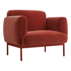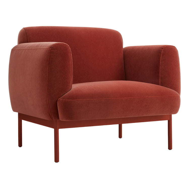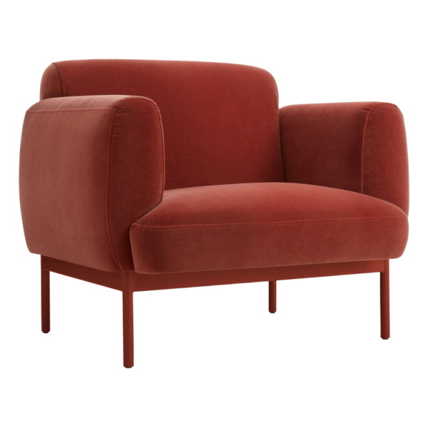 The Torrey Arm Chair delivers a bold yet inviting presence with its plush proportions and softly rounded form. Upholstered in rich velvet, this chair features a deep, cushioned seat and generously curved arms that create a comfortable, lounge-forward profile. The warm, saturated tone adds depth and sophistication while remaining versatile across a range of design styles.
