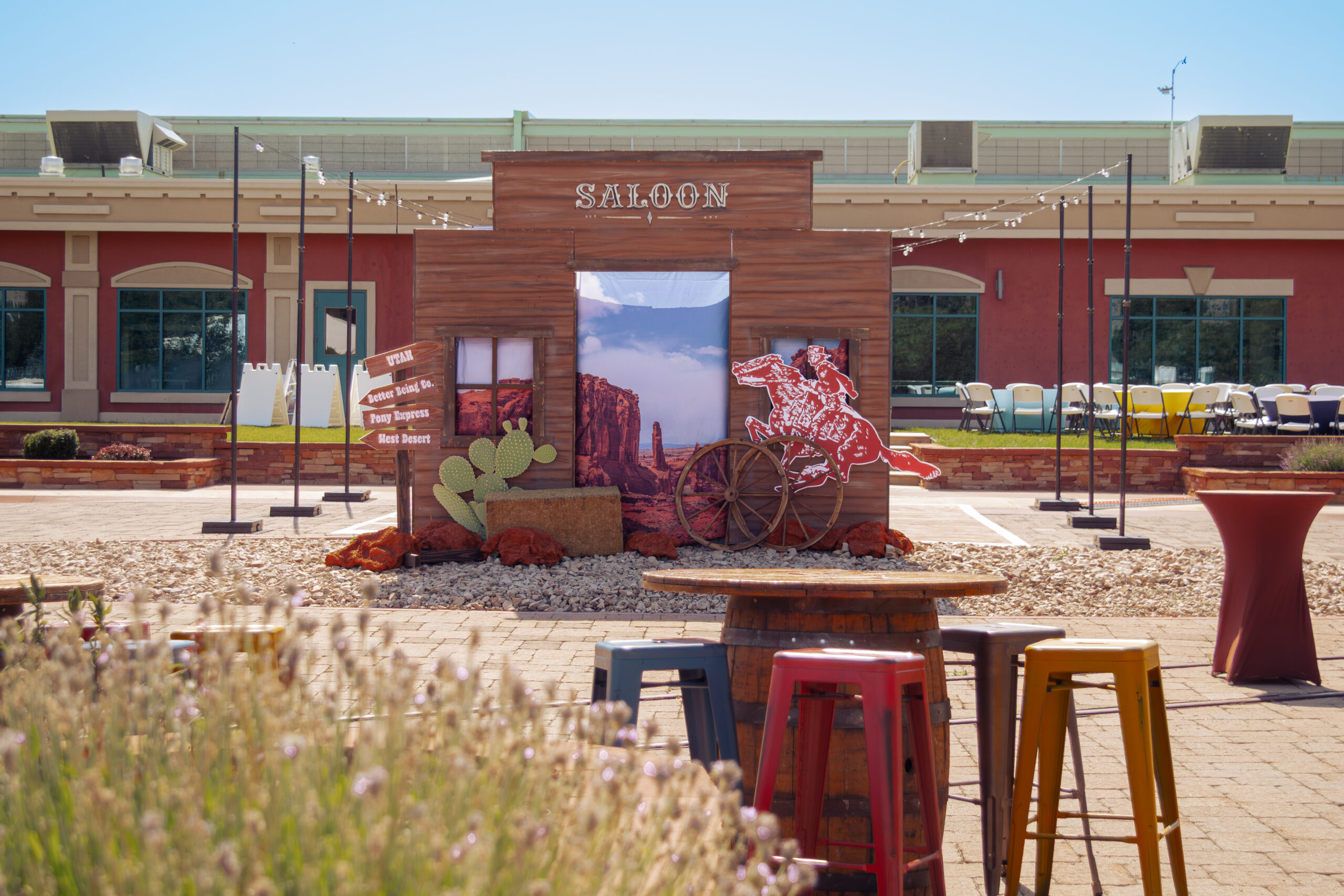 Immersive Western-themed backdrop perfect for photo opportunities at your event.